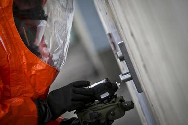 | Keywords: u.s. army usarmy u.s. air force usairforce air national guard airnationalguard army national guard armynationalguard usa usaf ang national guard nationalguard nj national guard njnationalguard new jersey newjersey cst civil support team civilsupportteam joint base mcguire-dix-lakehurst jointbasemcguiredixlakehurst camden exercise response soldier airman military n.j. nj public domain publicdomain free U.S. Army Sgt. Joseph Bercovic, from the New Jersey Army National Guard's 21st Civil Support Team, uses detection gear on a warehouse door during a training proficiency evaluation at the South Jersey Port Corporation on the Camden Waterfront in Camden, N.J., May 24, 2016. The 21st Civil Support Team is a joint unit made up of Soldiers and Airmen, and their mission is to support civil authorities by identifying chemical, biological, radiological, and nuclear substances in either man made or natural disasters. (U.S. Air National Guard photo by Tech. Sgt. Matt Hecht/Released) U.S. Army Sgt. Joseph Bercovic, from the New Jersey Army National Guard's 21st Civil Support Team, uses detection gear on a warehouse door during a training proficiency evaluation at the South Jersey Port Corporation on the Camden Waterfront in Camden, N.J., May 24, 2016. The 21st Civil Support Team is a joint unit made up of Soldiers and Airmen, and their mission is to support civil authorities by identifying chemical, biological, radiological, and nuclear substances in either man made or natural disasters. (U.S. Air National Guard photo by Tech. Sgt. Matt Hecht/Released) |