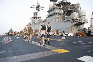 | Keywords: 160528-N-OF476-238 160528-N-OF476-238.jpg en GULF OF ADEN May 28 2016 Sailors and Marines participate in a ruck march honoring those who have fallen at sunrise on the flight deck of the amphibious assault ship USS Boxer LHD 4 in observation of Memorial Day Boxer is the flagship for the Boxer Amphibious Ready Group and with the embarked 13th Marine Expeditionary Unit is deployed in support of maritime security operations and theater security cooperation efforts in the U S 5th Fleet area of operations U S Navy photo by Mass Communication Specialist Seaman Eric Burgett/Released Unit USS Boxer LHD 4 2016-05-28 Seaman Eric Burgett https //www dvidshub net/image/2620621/160528-n-of476-238 160528-N-OF476-238 2016-05-28 09 12 GULF OF ADEN PD-USGov-Military-Navy 13th Marine Expeditionary Unit USS Boxer LHD-4 Images from DoD uploaded by Fæ |