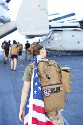 | Keywords: 160528-N-UB927-035 160528-N-UB927-035.jpg en GULF OF ADEN May 28 2016 Lt Brandy Brown 13th Marine Expeditionary Unit Chaplain leads a Memorial Day sunrise ruck march on the flight deck aboard amphibious assault ship USS Boxer LHD 4 Boxer is the flagship for the Boxer Amphibious Ready Group and with the embarked 13th Marine Expeditionary Unit is deployed in support of maritime security operations and theater security cooperation efforts in the U S 5th Fleet area of operations U S Navy photo by Mass Communication Specialist Seaman Brett Anderson/Released Unit USS Boxer LHD 4 DVIDS Tags BOXARG13MEU16; DVIDS Email Import 2016-05-28 Seaman Brett Anderson https //www dvidshub net/image/2620653/160528-n-ub927-035 160528-N-UB927-035 2016-05-28 10 02 GULF OF ADEN PD-USGov-Military-Navy 13th Marine Expeditionary Unit USS Boxer LHD-4 Images from DoD uploaded by Fæ |