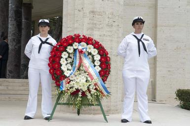 | Keywords: 160529-N-TC720-501 160529-N-TC720-501.jpg en 160529-N-TC720-501 NETTUNO Italy May 29 2016 Gunner's Mate 2nd Class Samantha Canchola from Chicago left and Gunner's Mate 1st Class Kali Morris from Doylestown Ohio stationed aboard USS Donald Cook DDG 75 stand next to a wreath delivered on behalf of the United States during the Memorial Day ceremony at Sicily-Rome American Cemetery During the ceremony veterans service members students and families gathered to honor and pay tribute to those who gave their lives during the liberation of Italy in 1943 U S Navy photo by Mass Communication Specialist 2nd Class Mat Murch/Released Unit Navy Media Content Services DVIDS Tags NATO; Italy; NSA Naples; Europe; NPASE-East; Sailors; Marines; U S Navy; NMCS; DVIDS Bulk Import; Navy Public Affairs; Navy MC 2016-05-29 Petty Officer 2nd Class Matthew Murch https //www dvidshub net/image/2627071/160529-n-tc720-501 160529-N-TC720-501 2016-06-01 00 18 NETTUNO IT PD-USGov-Military-Navy USS Donald Cook DDG-75 Images from DoD uploaded by Fæ |