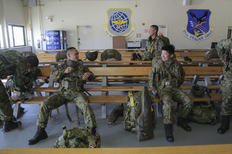 | Keywords: arctic aurora 2016 arcticaurora2016 airborne 4th infantry brigade combat team (airborne) 4thinfantrybrigadecombatteamairborne 25th infantry division 25thinfantrydivision kc-130j super hercules kc130jsuperhercules japanese ground self defense force japanesegroundselfdefenseforce joint base elmendorf-richardson jointbaseelmendorfrichardson alaska usa us indoor Japanese Ground Self Defense Force paratroopers wait to board an aircraft before conducting airborne operations during Arctic Aurora 2016 at Joint Base Elmendorf-Richardson, Alaska, June 2, 2016. Arctic Aurora 2016 is a yearly bilateral training exercise, involving elements of the 4th Infantry Brigade Combat Team (Airborne), 25th Infantry Division and the Japanese Ground Self Defense Force, that promotes interoperability by conducting combined small unit airborne proficiency operations and basic small arms marksmanship. (U.S. Air Force photo/Alejandro Pena) Japanese Ground Self Defense Force paratroopers wait to board an aircraft before conducting airborne operations during Arctic Aurora 2016 at Joint Base Elmendorf-Richardson, Alaska, June 2, 2016. Arctic Aurora 2016 is a yearly bilateral training exercise, involving elements of the 4th Infantry Brigade Combat Team (Airborne), 25th Infantry Division and the Japanese Ground Self Defense Force, that promotes interoperability by conducting combined small unit airborne proficiency operations and basic small arms marksmanship. (U.S. Air Force photo/Alejandro Pena) |