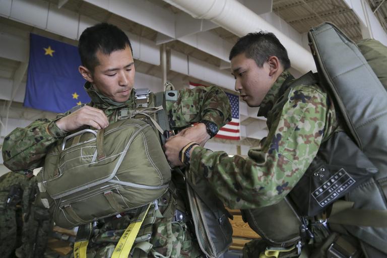 MAKE A MEME View Large Image Japanese Ground Self Defense Force paratroopers don their jump gear before conducting airborne operations during Arctic Aurora 2016 at Joint Base Elmendorf-Richardson, Alaska, June 2, 2016. Arctic Aurora 2016 is a yearly bilateral training ...