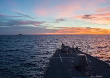 | Keywords: uss william p. lawrence (ddg 110) usswilliamplawrenceddg110 great green fleet greatgreenfleet john c. stennis strike group johncstennisstrikegroup jcssg south china sea southchinasea outdoor landscape shore seaside sea water coast ocean sky boat vehicle 160603-N-OR184-043 SOUTH CHINA SEA (June 3, 2016) The aircraft carrier USS John C. Stennis (CVN 74) and guided-missile destroyer USS William P. Lawrence (DDG 110) steam in the South China Sea as the sun sets. Providing a ready force supporting security and stability in the Indo-Asia-Pacific, William P. Lawrence, commanded by Cmdr. Walter C. Mainor, is operating as part of the John C. Stennis Strike Group and Great Green Fleet on a regularly scheduled 7th Fleet deployment. (U.S. Navy photo by Mass Communication Specialist 3rd Class Emiline L. M. Senn/Released) 160603-N-OR184-043 SOUTH CHINA SEA (June 3, 2016) The aircraft carrier USS John C. Stennis (CVN 74) and guided-missile destroyer USS William P. Lawrence (DDG 110) steam in the South China Sea as the sun sets. Providing a ready force supporting security and stability in the Indo-Asia-Pacific, William P. Lawrence, commanded by Cmdr. Walter C. Mainor, is operating as part of the John C. Stennis Strike Group and Great Green Fleet on a regularly scheduled 7th Fleet deployment. (U.S. Navy photo by Mass Communication Specialist 3rd Class Emiline L. M. Senn/Released) |
