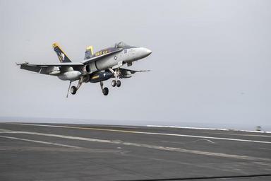 | Keywords: aircraft vehicle outdoor airplane 160603-N-PE636-298 MEDITERRANEAN SEA (June 3, 2016) An F/A-18C Super Hornet, assigned to the "Rampagers" of Strike Fighter Squadron (VFA) 83, prepares to land on the flight deck of aircraft carrier USS Harry S. Truman (CVN 75). Harry S. Truman Carrier Strike Group is deployed in support of Operation Inherent Resolve, maritime security operations and theater security cooperation efforts in the U.S. 6th Fleet area of operations. (U.S. Navy photo by Mass Communication Specialist 3rd Class Anthony Flynn/ Released) 160603-N-PE636-298 MEDITERRANEAN SEA (June 3, 2016) An F/A-18C Super Hornet, assigned to the "Rampagers" of Strike Fighter Squadron (VFA) 83, prepares to land on the flight deck of aircraft carrier USS Harry S. Truman (CVN 75). Harry S. Truman Carrier Strike Group is deployed in support of Operation Inherent Resolve, maritime security operations and theater security cooperation efforts in the U.S. 6th Fleet area of operations. (U.S. Navy photo by Mass Communication Specialist 3rd Class Anthony Flynn/ Released) |
