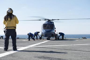 | Keywords: baltops 2016 baltops2016 navy lcc 20 lcc20 outdoor 160607-N-KP948-265 BALTIC SEA (June 7, 2016) The flight deck crew removes the chocks and chains from a Danish Lynx helicopter before it takes off from the USS Mount Whitney (LCC 20) flight deck, June 7, 2016. BALTOPS is an annual recurring multinational exercise designed to improve interoperability, enhance flexibility and demonstrate the resolve of allied and partner nations to defend the Baltic region. (U.S. Navy photo by Mass Communication Specialist Seaman Alyssa Weeks/Released) 160607-N-KP948-265 BALTIC SEA (June 7, 2016) The flight deck crew removes the chocks and chains from a Danish Lynx helicopter before it takes off from the USS Mount Whitney (LCC 20) flight deck, June 7, 2016. BALTOPS is an annual recurring multinational exercise designed to improve interoperability, enhance flexibility and demonstrate the resolve of allied and partner nations to defend the Baltic region. (U.S. Navy photo by Mass Communication Specialist Seaman Alyssa Weeks/Released) |