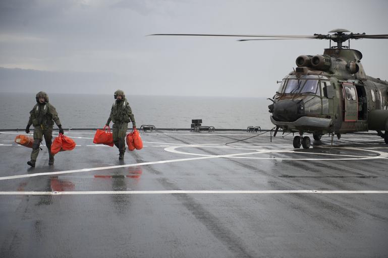 Keywords: baltops 2016 baltops2016 navy lcc 20 lcc20 outdoor 160608-N-YA681-025BALTIC SEA (June 8, 2016) - Netherlands Royal Air Force Cougar transport helicopter crew members carry gear after landing on USS Mount Whitney (LCC20) as part of BALTOPS 2016. BALTOPS is an annual recurring multinational exercise designed to improve interoperability, enhance flexibility and demonstrate the resolve of allied and partner nations to defend the Baltic region. (U.S. Navy photo by Mass Communication Specialist 2nd Class Rebecca Sunderland/Released) 160608-N-YA681-025BALTIC SEA (June 8, 2016) - Netherlands Royal Air Force Cougar transport helicopter crew members carry gear after landing on USS Mount Whitney (LCC20) as part of BALTOPS 2016. BALTOPS is an annual recurring multinational exercise designed to improve interoperability, enhance flexibility and demonstrate the resolve of allied and partner nations to defend the Baltic region. (U.S. Navy photo by Mass Communication Specialist 2nd Class Rebecca Sunderland/Released)