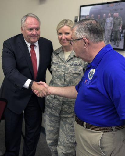 | Keywords: air force airforce usaf air national guard airnationalguard ang national guard nationalguard ngb 182 airlift wing airliftwing peoria illinois always on mission alwaysonmission airmen esgr civilian employer support guard reserve breakfast boss comrel community relations il usa us people Doug Stewart, left, a regional president with PNC Bank, shakes hands with Ron Bacci, the chair of the Illinois Employer Support of the Guard and Reserve field committee, after signing a pledge of support during an ESGR “Breakfast with the Boss” event at the 182nd Airlift Wing, Peoria, Ill., June 8, 2016. Stewart and civilian employers toured the base to see firsthand how their employees serve the Illinois National Guard. (U.S. Air National Guard photo by Staff Sgt. Lealan Buehrer) Doug Stewart, left, a regional president with PNC Bank, shakes hands with Ron Bacci, the chair of the Illinois Employer Support of the Guard and Reserve field committee, after signing a pledge of support during an ESGR “Breakfast with the Boss” event at the 182nd Airlift Wing, Peoria, Ill., June 8, 2016. Stewart and civilian employers toured the base to see firsthand how their employees serve the Illinois National Guard. (U.S. Air National Guard photo by Staff Sgt. Lealan Buehrer) |