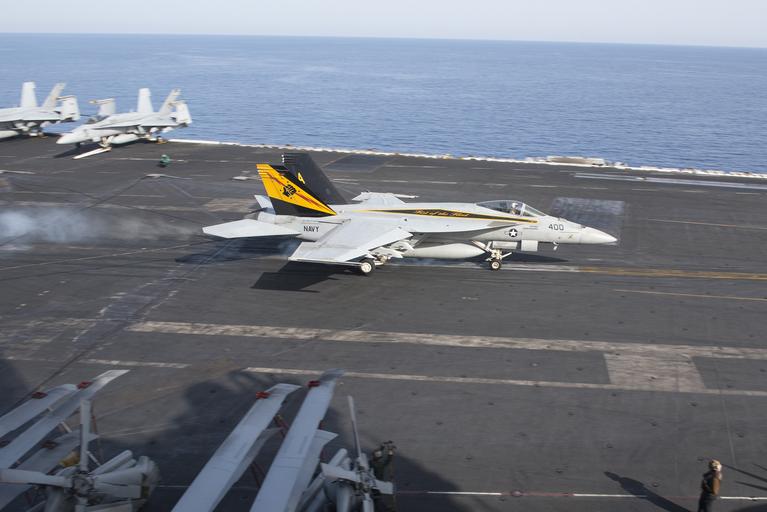 Keywords: outdoor vehicle aircraft airplane bird animal 160614-N-IG466-098 MEDITERRANEAN SEA (June 14, 2016) An F/A-18E Super Hornet, assigned to the “Fist of the Fleet” of Strike Fighter Squadron (VFA) 25, lands on the flight deck of aircraft carrier USS Harry S. Truman (CVN 75). Harry S. Truman Carrier Strike Group is deployed in support of Operation Inherent Resolve, maritime security operations and theater security cooperation efforts in the U.S. 6th Fleet area of operations. (U.S. Navy photo by Mass Communication Specialist 3rd Class Adelola Tinubu/Released) 160614-N-IG466-098 MEDITERRANEAN SEA (June 14, 2016) An F/A-18E Super Hornet, assigned to the “Fist of the Fleet” of Strike Fighter Squadron (VFA) 25, lands on the flight deck of aircraft carrier USS Harry S. Truman (CVN 75). Harry S. Truman Carrier Strike Group is deployed in support of Operation Inherent Resolve, maritime security operations and theater security cooperation efforts in the U.S. 6th Fleet area of operations. (U.S. Navy photo by Mass Communication Specialist 3rd Class Adelola Tinubu/Released) |