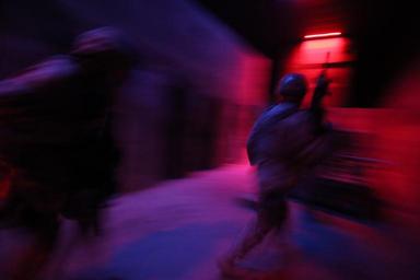 | Keywords: usaf u.s. air force usairforce air national guard airnationalguard new jersey newjersey 177th security forces squadron 177thsecurityforcessquadron m4 training joint base mcguire-dix-lakehurst jointbasemcguiredixlakehurst jt2dc n.j. nj usa public domain publicdomain free blur U.S. Air Force Airmen from the New Jersey Air National Guard's 177th Security Forces Squadron maneuver through an indoor Military Operations in Urban Terrain (MOUT) site during training at the New Jersey National Guard's Joint Training & Training Development Center (JT2DC), Joint Base McGuire-Dix-Lakehurst, N.J., June 16, 2016. The 177th Security Forces Squadron was utilizing the ability for the JT2DC's training areas to simulate low-light conditions in an urban environment. The red and blue lighting simulates a moonlit night as seen through night vision devices. (U.S. Air National Guard photo by Tech. Sgt. Matt Hecht/Released) U.S. Air Force Airmen from the New Jersey Air National Guard's 177th Security Forces Squadron maneuver through an indoor Military Operations in Urban Terrain (MOUT) site during training at the New Jersey National Guard's Joint Training & Training Development Center (JT2DC), Joint Base McGuire-Dix-Lakehurst, N.J., June 16, 2016. The 177th Security Forces Squadron was utilizing the ability for the JT2DC's training areas to simulate low-light conditions in an urban environment. The red and blue lighting simulates a moonlit night as seen through night vision devices. (U.S. Air National Guard photo by Tech. Sgt. Matt Hecht/Released) |