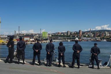 | Keywords: mass communication specialist 3rd class masscommunicationspecialist3rdclass mc3 casey j. hopkins caseyjhopkins norfolk deployment uss nitze ussnitze ddg 94 ddg94 atlantic ocean atlanticocean navy carrier strike group 10 carrierstrikegroup10 uss dwight d. eisenhower ussdwightdeisenhower destroyer forward deployed forwarddeployed cmdr. paul kaylor cmdrpaulkaylor mooring lines mooringlines heave pier military sealift command militarysealiftcommand ike csg ikecsg eisenhower carrier strike group eisenhowercarrierstrikegroup 5th fleet 5thfleet 6th fleet 6thfleet cvn 69 cvn69 carrier air wing 3 carrierairwing3 cvw 3 cvw3 destroyer squadron 26 destroyersquadron26 desron 26 desron26 uss san jacento usssanjacento cg 56 cg56 uss monterey ussmonterey cg 61 cg61 uss stout ussstout ddg 55 ddg55 uss roosevelt ussroosevelt ddg 80 ddg80 uss mason ussmason ddg 87 ddg87 arleigh burke-class guided-missile destroyer arleighburkeclassguidedmissiledestroyer hsm 74 hsm74 helicopter maritime strike squadron 74 helicoptermaritimestrikesquadron74 mh-60r sea hawk mh60rseahawk mediterranean sea mediterraneansea trieste italy moor outdoor landscape seaside shore 160618-N-EO381-130 MEDITERRANEAN SEA (June 18, 2016) - Sailors assigned to the guided-missile destroyer USS Nitze (DDG 94) man the rails as the ship arrives for a port visit to Trieste, Italy. Nitze, deployed as part of the Eisenhower Carrier Strike Group, is conducting naval operations in the U.S. 6th Fleet area of operations in support of U.S. national security interests in Europe. (U.S. Navy photo by Mass Communication Specialist 3rd Class Casey J. Hopkins/Released) 160618-N-EO381-130 MEDITERRANEAN SEA (June 18, 2016) - Sailors assigned to the guided-missile destroyer USS Nitze (DDG 94) man the rails as the ship arrives for a port visit to Trieste, Italy. Nitze, deployed as part of the Eisenhower Carrier Strike Group, is conducting naval operations in the U.S. 6th Fleet area of operations in support of U.S. national security interests in Europe. (U.S. Navy photo by Mass Communication Specialist 3rd Class Casey J. Hopkins/Released) |