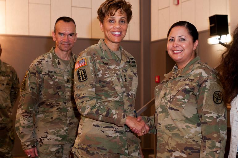 | Keywords: 30th medical brigade 30thmedicalbrigade army medicine armymedicine ltg nadja west ltgnadjawest army medicine europe armymedicineeurope europe lt gen nadja west ltgennadjawest medical 30th med bde medical30thmedbde nadja west nadjawest regional health command europe regionalhealthcommandeurope sembach town hall townhall germany groupshot people indoor Lt. Gen. Nadja West, U.S. Army Surgeon General and Commanding General of U.S. Army Medical Command, recognizes Soldiers and civilians on their outstanding achievements a town hall hosted by Regional Health Command Europe in Sembach, Germany on June 22. (U.S. Army photo by Capt. Jeku Arce, 30th Medical Brigade Public Affairs) Lt. Gen. Nadja West, U.S. Army Surgeon General and Commanding General of U.S. Army Medical Command, recognizes Soldiers and civilians on their outstanding achievements a town hall hosted by Regional Health Command Europe in Sembach, Germany on June 22. (U.S. Army photo by Capt. Jeku Arce, 30th Medical Brigade Public Affairs) |