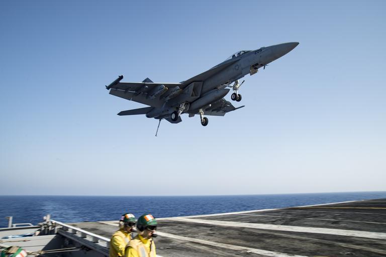 | Keywords: cvn 69 cvn69 eisenhower ike deployment c6f mediterranean sea mediterraneansea operation inherent resolve operationinherentresolve csg 10 csg10 vfa 86 vfa86 sidewinders outdoor airplane aircraft vehicle 160628-N-KK394-247  MEDITERRANEAN SEA (June 28, 2016) - An F/A-18E Super Hornet assigned to the Sidewinders of Strike Fighter Squadron (VFA) 86 prepares to make an arrested landing on the flight deck of the aircraft carrier USS Dwight D. Eisenhower (CVN 69) (Ike). Ike is deployed in support of Operation Inherent Resolve, maritime security operations and theater security operation efforts in the U.S. 6th Fleet area of operations. (U.S. Navy photo by Mass Communication Specialist 3rd Class Anderson W. Branch/Released)  160628-N-KK394-247  MEDITERRANEAN SEA (June 28, 2016) - An F/A-18E Super Hornet assigned to the Sidewinders of Strike Fighter Squadron (VFA) 86 prepares to make an arrested landing on the flight deck of the aircraft carrier USS Dwight D. Eisenhower (CVN 69) (Ike). Ike is deployed in support of Operation Inherent Resolve, maritime security operations and theater security operation efforts in the U.S. 6th Fleet area of operations. (U.S. Navy photo by Mass Communication Specialist 3rd Class Anderson W. Branch/Released)   |