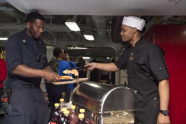 | Keywords: cvn 69 cvn69 eisenhower ike deployment c6f mediterranean sea mediterraneansea operation inherent resolve operationinherentresolve csg 10 csg10 cs brunch indoor 160703-N-KK394-008 MEDITERRANEAN SEA (July 3, 2016) - Culinary Specialist 2nd Class Lugene Johnson serves waffles on the aft mess decks of the aircraft carrier USS Dwight D. Eisenhower (CVN 69) (Ike). Ike is deployed in support of Operation Inherent Resolve, maritime security operations and theater security operation efforts in the U.S. 6th Fleet area of operations. (U.S. Navy photo by Mass Communication Specialist 3rd Class Anderson W. Branch/Released) 160703-N-KK394-008 MEDITERRANEAN SEA (July 3, 2016) - Culinary Specialist 2nd Class Lugene Johnson serves waffles on the aft mess decks of the aircraft carrier USS Dwight D. Eisenhower (CVN 69) (Ike). Ike is deployed in support of Operation Inherent Resolve, maritime security operations and theater security operation efforts in the U.S. 6th Fleet area of operations. (U.S. Navy photo by Mass Communication Specialist 3rd Class Anderson W. Branch/Released) |