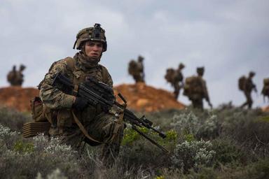 | Keywords: 1-1 marines 11marines marine training usmc cultana training area cultanatrainingarea south australia southaustralia australia au outdoor U.S. Marine Corps Lance Cpl. Eric J. Radtke, a rifleman, scans the area outside of an objective during Exercise Hamel at Cultana Training Area, South Australia, Australia, July 7, 2016. Exercise Hamel is a trilateral training exercise with Australian, New Zealand, and U.S. forces to enhance cooperation, trust, and friendship. Radtke, from Oak Creek, Wisconsin, is with Company C, 1st Battalion, 1st Marine Regiment, Marine Rotational Force – Darwin. (U.S. Marine Corps photo by Lance Cpl. Osvaldo L. Ortega III) U.S. Marine Corps Lance Cpl. Eric J. Radtke, a rifleman, scans the area outside of an objective during Exercise Hamel at Cultana Training Area, South Australia, Australia, July 7, 2016. Exercise Hamel is a trilateral training exercise with Australian, New Zealand, and U.S. forces to enhance cooperation, trust, and friendship. Radtke, from Oak Creek, Wisconsin, is with Company C, 1st Battalion, 1st Marine Regiment, Marine Rotational Force – Darwin. (U.S. Marine Corps photo by Lance Cpl. Osvaldo L. Ortega III) |