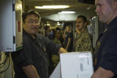 | Keywords: usmc marine corps marinecorps marines combat camera combatcamera comcam exercise 22 meu 22meu meu marine expeditionary unit marineexpeditionaryunit ras resupply at sea resupplyatsea uss wasp (lhd-1) usswasplhd1 usa groupshot people indoor 160723-M-AF202-035 MEDITERRANEAN SEA (July 23, 2016) Marines and Sailors work together during a replenishment at sea aboard the amphibious assault ship USS Wasp (LHD-1) July 23, 2016. 22nd MEU, deployed with the Wasp Amphibious Ready Group, is conducting naval operations in the 6th Fleet area of operations in support of U.S. national security interests in Europe. (U.S. Marine Corps photo by Lance Cpl. Koby I. Saunders) 160723-M-AF202-035 MEDITERRANEAN SEA (July 23, 2016) Marines and Sailors work together during a replenishment at sea aboard the amphibious assault ship USS Wasp (LHD-1) July 23, 2016. 22nd MEU, deployed with the Wasp Amphibious Ready Group, is conducting naval operations in the 6th Fleet area of operations in support of U.S. national security interests in Europe. (U.S. Marine Corps photo by Lance Cpl. Koby I. Saunders) |