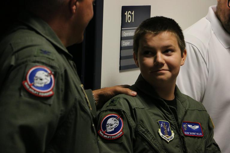 | Keywords: ohio air national guard ohioairnationalguard 179th airlift wing 179thairliftwing air guard airguard air national guard airnationalguard always on mission alwaysonmission always ready alwaysready c-130 c130 c-130h c130h c-130h hercules c130hhercules hercules united states air force unitedstatesairforce air force airforce pilot for a day pilotforaday stargardts mansfield oh us people indoor Mason "Masonic" Mullen was honored as a C-130H Hercules Pilot for a Day in Mansfield, Ohio, July 28, 2016. The 13 year old from Shelby, Ohio, was diagnosed with Stargardt's Disease, an inherited retinal disease which causes eventual central vision loss. Mason was given the honorary rank and treatment of a General and given honorary lifetime membership to the 164th Airlift Squadron. (U.S. Air National Guard photo by Tech. Sgt. Joe Harwood\Released) Mason "Masonic" Mullen was honored as a C-130H Hercules Pilot for a Day in Mansfield, Ohio, July 28, 2016. The 13 year old from Shelby, Ohio, was diagnosed with Stargardt's Disease, an inherited retinal disease which causes eventual central vision loss. Mason was given the honorary rank and treatment of a General and given honorary lifetime membership to the 164th Airlift Squadron. (U.S. Air National Guard photo by Tech. Sgt. Joe Harwood\Released) |