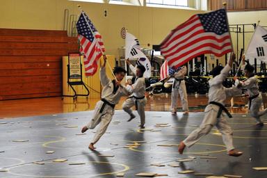 | Keywords: taekwondo u.s. army usarmy u.s. marine corps usmarinecorps u.s. navy usnavy u.s. air force usairforce presidio of monterey presidioofmonterey korea The Kukkiwon Taekwondo Demonstration Team from Korea performed a traditional martial arts demonstration at the Presidio of Monterey, California, Price Fitness Center Aug. 3. The Defense Language Institute Foreign Language Center Korean School hosted the event. Following the demonstration, the team answered questions in Korean for the benefit of the students. Kukkiwon, known as the World Taekwondo Headquarters, is the center of taekwondo culture in Korea with teams touring about 120 countries as ambassadors of the traditional martial art for the past 40 years. (U.S. Army photo by Patrick Bray/Released) The Kukkiwon Taekwondo Demonstration Team from Korea performed a traditional martial arts demonstration at the Presidio of Monterey, California, Price Fitness Center Aug. 3. The Defense Language Institute Foreign Language Center Korean School hosted the event. Following the demonstration, the team answered questions in Korean for the benefit of the students. Kukkiwon, known as the World Taekwondo Headquarters, is the center of taekwondo culture in Korea with teams touring about 120 countries as ambassadors of the traditional martial art for the past 40 years. (U.S. Army photo by Patrick Bray/Released) |