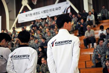| Keywords: taekwondo u.s. army usarmy u.s. marine corps usmarinecorps u.s. navy usnavy u.s. air force usairforce presidio of monterey presidioofmonterey korea outdoor The Kukkiwon Taekwondo Demonstration Team from Korea performed a traditional martial arts demonstration at the Presidio of Monterey, California, Price Fitness Center Aug. 3. The Defense Language Institute Foreign Language Center Korean School hosted the event. Following the demonstration, the team answered questions in Korean for the benefit of the students. Kukkiwon, known as the World Taekwondo Headquarters, is the center of taekwondo culture in Korea with teams touring about 120 countries as ambassadors of the traditional martial art for the past 40 years. (U.S. Army photo by Patrick Bray/Released) The Kukkiwon Taekwondo Demonstration Team from Korea performed a traditional martial arts demonstration at the Presidio of Monterey, California, Price Fitness Center Aug. 3. The Defense Language Institute Foreign Language Center Korean School hosted the event. Following the demonstration, the team answered questions in Korean for the benefit of the students. Kukkiwon, known as the World Taekwondo Headquarters, is the center of taekwondo culture in Korea with teams touring about 120 countries as ambassadors of the traditional martial art for the past 40 years. (U.S. Army photo by Patrick Bray/Released) |