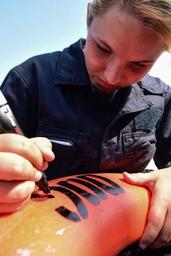 | Keywords: navy uss ross (ddg 71) ussrossddg71 ddg 71 ddg71 u.s. 6th fleet us6thfleet c6f ctf 65 ctf65 patrol mediterranean sea mediterraneansea 160806-N-FP878-028 MEDITERRANEAN SEA (Aug. 6, 2016) – Boatswain’s Mate Seaman Josie Ellwood, from Baltimore, stencils a life ring aboard USS Ross (DDG 71) Aug. 6, 2016. Ross, an Arleigh Burke-class guided-missile destroyer, forward-deployed to Rota, Spain, is conducting naval operations in the U.S. 6th Fleet Area of Operations in support of U.S. national security interests in Europe and Africa. (U.S. Navy photo by Mass Communication Specialist 1st Class Theron J. Godbold/Released) 160806-N-FP878-028 MEDITERRANEAN SEA (Aug. 6, 2016) – Boatswain’s Mate Seaman Josie Ellwood, from Baltimore, stencils a life ring aboard USS Ross (DDG 71) Aug. 6, 2016. Ross, an Arleigh Burke-class guided-missile destroyer, forward-deployed to Rota, Spain, is conducting naval operations in the U.S. 6th Fleet Area of Operations in support of U.S. national security interests in Europe and Africa. (U.S. Navy photo by Mass Communication Specialist 1st Class Theron J. Godbold/Released) |
