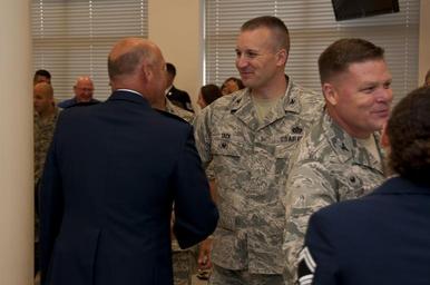 | Keywords: ohio air national guard ohioairnationalguard 179th airlift wing 179thairliftwing air guard airguard change of command changeofcommand wing commander wingcommander commander air national guard airnationalguard mansfield oh us people indoor 179th Airlift Wing Vice Commander, Col. Dan Tack, congratulates Lt. Col. Philip M. Brown as Ohio Air National Guardsmen from the 179th Airlift Wing, Mansfield, Ohio, gather for the 179th Force Support Squadron (FSS) Assumption of Command Ceremony. Col. Patricia L. Barr, 179th Mission Support Group Commander, presents the ceremonial guidon to Lt. Col. Philip M. Brown, making him the FSS Commander effective Aug. 6, 2016. (U.S. Air National Guard photo by Tech. Sgt. Joe Harwood\Released) 179th Airlift Wing Vice Commander, Col. Dan Tack, congratulates Lt. Col. Philip M. Brown as Ohio Air National Guardsmen from the 179th Airlift Wing, Mansfield, Ohio, gather for the 179th Force Support Squadron (FSS) Assumption of Command Ceremony. Col. Patricia L. Barr, 179th Mission Support Group Commander, presents the ceremonial guidon to Lt. Col. Philip M. Brown, making him the FSS Commander effective Aug. 6, 2016. (U.S. Air National Guard photo by Tech. Sgt. Joe Harwood\Released) |