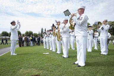 | Keywords: navy lcc 20 lcc20 mount whitney mountwhitney flagship ship operation dragoon operationdragoon world war ii worldwarii wwii draguignan france outdoor 160816-N-KP948-009 DRAGUIGNAN, France (Aug. 16, 2016) - The U.S. Naval Forces Europe Band performs at a ceremony to honor service members who died during the World War II Allied landing on Southern France, code-named Operation Dragoon, at Rhone American Cemetery Aug. 16, 2016. The ceremony is part of a series of events that the U.S. Navy is participating in alongside French civilian and military officials to commemorate the 72nd Anniversary of Operation Dragoon. (U.S. Navy Photo by Mass Communication Specialist Seaman Alyssa Weeks/Released) 160816-N-KP948-009 DRAGUIGNAN, France (Aug. 16, 2016) - The U.S. Naval Forces Europe Band performs at a ceremony to honor service members who died during the World War II Allied landing on Southern France, code-named Operation Dragoon, at Rhone American Cemetery Aug. 16, 2016. The ceremony is part of a series of events that the U.S. Navy is participating in alongside French civilian and military officials to commemorate the 72nd Anniversary of Operation Dragoon. (U.S. Navy Photo by Mass Communication Specialist Seaman Alyssa Weeks/Released) |