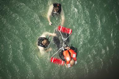 | Keywords: usns mercy (t-ah 19) usnsmercytah19 pacific partnership 16 pacificpartnership16 padang indonesia tni pacific partnership pacificpartnership pp16 mc3 kohlrus mc3kohlrus 160829-N-QW941-196 PADANG, Indonesia (Aug. 29, 2016) Naval Air Crewman (Helicopter) 2nd Class Ben McCracken (top), from Sarasota, Florida and Naval Air Crewman (Helicopter) 3rd Class Sean Magee (left), from Marble Hill, Missouri, both assigned to Helicopter Sea Combat Squadron (HSC) 21, place a simulated casualty into a rescue basket during a Pacific Partnership 2016 search and rescue drill. During the drill, aviation rescue swimmers hoisted simulated casualties from the water into an MH-60S helicopter for medical evacuation to hospital ship USNS Mercy (T-AH 19). The Pacific Partnership search and rescue field training exercise spanned across three locations in Padang and included a water rescue, a field hospital for patient triage and transport, and a mass casualty at a local soccer field. The day's events were facilitated by Tentara Nasional Indonesia, local first responders and the Pacific Partnership humanitarian assistance and disaster relief team. This is the fifth time Pacific Partnership has visited Indonesia. Partner nations are working side-by-side with local organizations during disaster response training, civil engineering projects, Women, Peace, and Security seminars, medical subject matter expert exchanges and a live field training exercise aimed at improving the capacity of local government, civilian agencies and partner militaries to collectively respond in crisis. (U.S. Navy photo by Mass Communication Specialist 3rd Class Trevor Kohlrus/Released) 160829-N-QW941-196 PADANG, Indonesia (Aug. 29, 2016) Naval Air Crewman (Helicopter) 2nd Class Ben McCracken (top), from Sarasota, Florida and Naval Air Crewman (Helicopter) 3rd Class Sean Magee (left), from Marble Hill, Missouri, both assigned to Helicopter Sea Combat Squadron (HSC) 21, place a simulated casualty into a rescue basket during a Pacific Partnership 2016 search and rescue drill. During the drill, aviation rescue swimmers hoisted simulated casualties from the water into an MH-60S helicopter for medical evacuation to hospital ship USNS Mercy (T-AH 19). The Pacific Partnership search and rescue field training exercise spanned across three locations in Padang and included a water rescue, a field hospital for patient triage and transport, and a mass casualty at a local soccer field. The day's events were facilitated by Tentara Nasional Indonesia, local first responders and the Pacific Partnership humanitarian assistance and disaster relief team. This is the fifth time Pacific Partnership has visited Indonesia. Partner nations are working side-by-side with local organizations during disaster response training, civil engineering projects, Women, Peace, and Security seminars, medical subject matter expert exchanges and a live field training exercise aimed at improving the capacity of local government, civilian agencies and partner militaries to collectively respond in crisis. (U.S. Navy photo by Mass Communication Specialist 3rd Class Trevor Kohlrus/Released) |