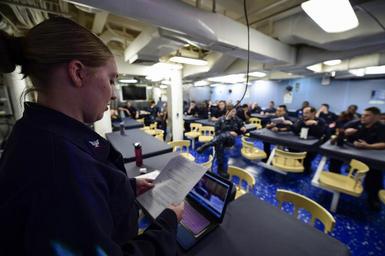| Keywords: navy uss ross (ddg 71) ussrossddg71 ddg 71 ddg71 u.s. 6th fleet us6thfleet c6f ctf 65 ctf65 patrol souda bay soudabay indoor 160830-N-FP878-010 SOUDA BAY, Greece (Aug. 30, 2016) Hospital Corpsman 2nd Class Kassandra Peters from Hilo, Hawaii gives Chart the Course training aboard USS Ross (DDG 71) Aug. 30, 2016. Ross, an Arleigh Burke-class guided-missile destroyer, forward-deployed to Rota, Spain, is conducting naval operations in the U.S. 6th Fleet Area of Operations in support of U.S. national security interests in Europe and Africa. (U.S. Navy photo by Mass Communication Specialist 1st Class Theron J. Godbold/Released) 160830-N-FP878-010 SOUDA BAY, Greece (Aug. 30, 2016) Hospital Corpsman 2nd Class Kassandra Peters from Hilo, Hawaii gives Chart the Course training aboard USS Ross (DDG 71) Aug. 30, 2016. Ross, an Arleigh Burke-class guided-missile destroyer, forward-deployed to Rota, Spain, is conducting naval operations in the U.S. 6th Fleet Area of Operations in support of U.S. national security interests in Europe and Africa. (U.S. Navy photo by Mass Communication Specialist 1st Class Theron J. Godbold/Released) |