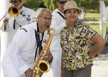 | Keywords: people outdoor 160831-N-AL248-196 LONG BEACH, California (Aug. 31, 2016) A woman takes a photo with the Navy Band Southwest’s “32nd Street Brass Band“ as they entertain those in attendance at the Aquarium of the Pacific as part of Los Angeles Fleet Week. The inaugural Los Angeles Fleet Week offers the public an opportunity to tour ships, meet Sailors, Marines and members of the Coast Guard and gain better understanding of how the sea services support the national defense of the United States and freedom of the seas. (U. S. Navy photo by Chief Mass Communication Specialist Ryan B. Tabios/Released) 160831-N-AL248-196 LONG BEACH, California (Aug. 31, 2016) A woman takes a photo with the Navy Band Southwest’s “32nd Street Brass Band“ as they entertain those in attendance at the Aquarium of the Pacific as part of Los Angeles Fleet Week. The inaugural Los Angeles Fleet Week offers the public an opportunity to tour ships, meet Sailors, Marines and members of the Coast Guard and gain better understanding of how the sea services support the national defense of the United States and freedom of the seas. (U. S. Navy photo by Chief Mass Communication Specialist Ryan B. Tabios/Released) |