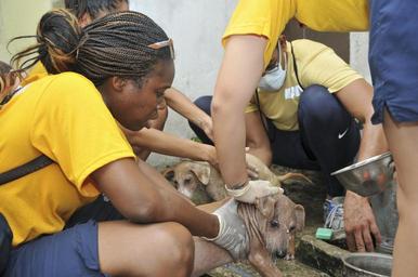 | Keywords: 160831-N-UJ449-025 160831-N-UJ449-025.jpg en COLOMBO Sri Lanka August 31 2016 Yeoman 2nd Class Yasmeen Emerson a native of Chicago assigned to the submarine tender USS Frank Cable AS 40 gives a dog a bath at the Animal Protection and Welfare Center during a Community Relations event Aug 31 The visit was aimed at building friendship and goodwill between the U S Navy and the people of Sri Lanka Frank Cable is one of two forward-deployed submarine tenders and is on a scheduled deployment in the U S 7th Fleet area of operations to conduct maintenance and support of deployed U S naval force submarines and surface vessels in the Indo-Asia-Pacific region U S Navy Photo by Mass Communication Specialist Seaman Josh Coté/Released <br>Unit Navy Media Content Services 2016-08-31 Seaman Josh Cote https //www dvidshub net/image/2841107/160831-n-uj449-025 160831-N-UJ449-025 2016-09-09 00 06 PD-USGov-Military-Navy USS Frank Cable AS-40 Images from DoD uploaded by Fæ |