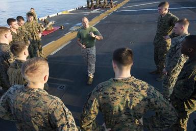 | Keywords: amphibious ready group amphibiousreadygroup flight deck flightdeck lhd 1 lhd1 marines sailors training u.s. marine corps usmarinecorps u.s. navy usnavy uss wasp usswasp wasp arg wasparg martial arts martialarts mediterranean sea mediterraneansea outdoor 160905-N-TO519-069 MEDITERRANEAN SEA (Sept. 5, 2016) Religious Programs Specialist 2nd Class Anthony Ventura, a martial arts instructor, instructs Marines on the flight deck aboard the amphibious assault ship USS Wasp (LHD 1) Sept. 5, 2016. Wasp is deployed with the Wasp Amphibious Ready Group to support maritime security operations and theater security cooperation efforts in the U.S. 6th Fleet area of operations. (U.S. Navy photo by Mass Communication Specialist 2nd Class Nathan Wilkes/Released) 160905-N-TO519-069 MEDITERRANEAN SEA (Sept. 5, 2016) Religious Programs Specialist 2nd Class Anthony Ventura, a martial arts instructor, instructs Marines on the flight deck aboard the amphibious assault ship USS Wasp (LHD 1) Sept. 5, 2016. Wasp is deployed with the Wasp Amphibious Ready Group to support maritime security operations and theater security cooperation efforts in the U.S. 6th Fleet area of operations. (U.S. Navy photo by Mass Communication Specialist 2nd Class Nathan Wilkes/Released) |