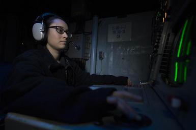 | Keywords: uss carney (ddg 64); 6th fleet; usscarneyddg646thfleet mediterranean sea mediterraneansea people 160919-N-ZE250-121 MEDITERRANEAN SEA (Sept. 19, 2016) - Sonar Technician (Surface) 3rd Class Amy Palmer monitors the sonar system aboard USS Carney (DDG 64) while on patrol in the Mediterranean Sea Sept. 19, 2016. Carney, an Arleigh Burke-class guided-missile destroyer, forward-deployed to Rota, Spain, is conducting a routine patrol in the U.S. 6th fleet area of operations in support of U.S. national security interests in Europe. (U.S. Navy photo by Mass Communication Specialist 3rd Class Weston Jones/Released) 160919-N-ZE250-121 MEDITERRANEAN SEA (Sept. 19, 2016) - Sonar Technician (Surface) 3rd Class Amy Palmer monitors the sonar system aboard USS Carney (DDG 64) while on patrol in the Mediterranean Sea Sept. 19, 2016. Carney, an Arleigh Burke-class guided-missile destroyer, forward-deployed to Rota, Spain, is conducting a routine patrol in the U.S. 6th fleet area of operations in support of U.S. national security interests in Europe. (U.S. Navy photo by Mass Communication Specialist 3rd Class Weston Jones/Released) |