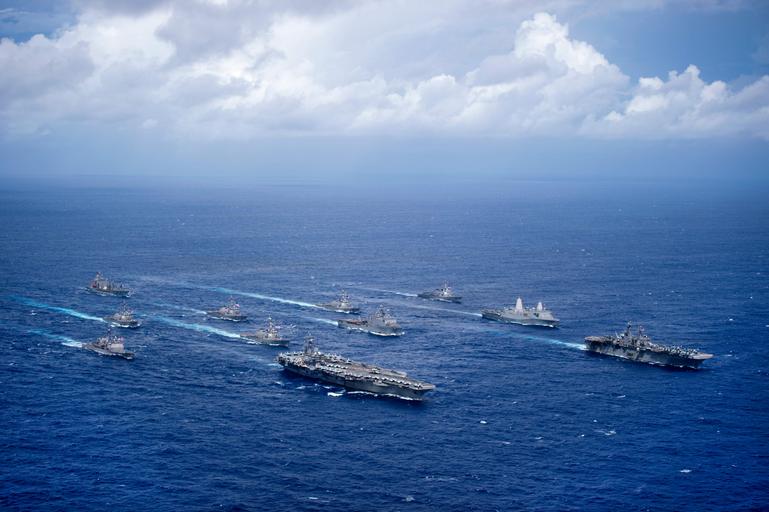 | Keywords: uss ronald reagan (cvn 76) ussronaldreagancvn76 uss bonhomme richard (lhd 6) ussbonhommerichardlhd6 uss momsen (ddg 92) ussmomsenddg92 uss chancellorsville (cg 62) usschancellorsvillecg62 uss stethem (ddg 63) ussstethemddg63 uss benfold (ddg 65) ussbenfoldddg65 uss curtis wilbur (ddg 54) usscurtiswilburddg54 uss germantown (lsd 42) ussgermantownlsd42 uss barry (ddg 52) ussbarryddg52 uss green bay (lpd 20) ussgreenbaylpd20 uss mccampbell (ddg 85) ussmccampbellddg85 outdoor sea boat vehicle ocean water 160920-N-NT265-725 PHILIPPINE SEA (Sept. 23, 2016) USS Ronald Reagan (CVN 76) and USS Bonhomme Richard (LHD 6) lead a formation of Carrier Strike Group Five and Expeditionary Strike Group Seven ships including, USS Momsen (DDG 92), USS Chancellorsville (CG 62), USS Stethem (DDG 63), USS Benfold (DDG 65), USS Curtis Wilbur (DDG 54), USS Germantown (LSD 42), USS Barry (DDG 52), USS Green Bay (LPD 20), USS McCampbell (DDG 85), as wells as USNS Walter S. Diehl (T-AO 193) during a photo exercise to signify the completion of Valiant Shield 2016. Valiant Shield is a biennial, U.S. only, field-training exercise with a focus on integration of joint training among U.S. forces. This is the sixth exercise in the Valiant Shield series that began in 2006. (U.S. Navy photo by Mass Communication Specialist 2nd Class Christian Senyk/Released) 160920-N-NT265-725 PHILIPPINE SEA (Sept. 23, 2016) USS Ronald Reagan (CVN 76) and USS Bonhomme Richard (LHD 6) lead a formation of Carrier Strike Group Five and Expeditionary Strike Group Seven ships including, USS Momsen (DDG 92), USS Chancellorsville (CG 62), USS Stethem (DDG 63), USS Benfold (DDG 65), USS Curtis Wilbur (DDG 54), USS Germantown (LSD 42), USS Barry (DDG 52), USS Green Bay (LPD 20), USS McCampbell (DDG 85), as wells as USNS Walter S. Diehl (T-AO 193) during a photo exercise to signify the completion of Valiant Shield 2016. Valiant Shield is a biennial, U.S. only, field-training exercise with a focus on integration of joint training among U.S. forces. This is the sixth exercise in the Valiant Shield series that began in 2006. (U.S. Navy photo by Mass Communication Specialist 2nd Class Christian Senyk/Released) |