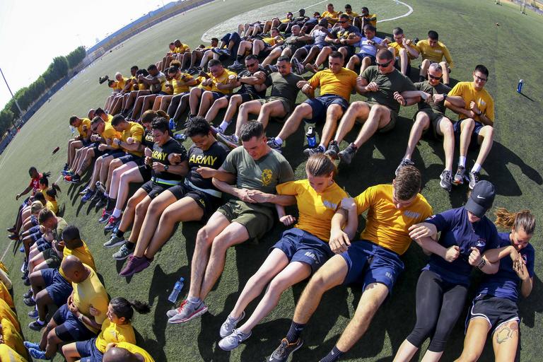 Keywords: hurricane matthew hurricanematthew storm gtmo meteorology weather shelter evacuation navy u.s. navy usnavy naval support activity bahrain navalsupportactivitybahrain bahrain bah 160928-M-JF072-737 NAVAL SUPPORT ACTIVITY BAHRAIN (Sept. 28, 2016) U.S. Marines, Soldiers, and Sailors stationed aboard Naval Support Activity Bahrain join together during an integrated physical training event. The PT event was open to all branches, and consisted of teamwork building exercises. (U.S. Marine Corps photo by Sgt. Lauren Falk/Released) 160928-M-JF072-737 NAVAL SUPPORT ACTIVITY BAHRAIN (Sept. 28, 2016) U.S. Marines, Soldiers, and Sailors stationed aboard Naval Support Activity Bahrain join together during an integrated physical training event. The PT event was open to all branches, and consisted of teamwork building exercises. (U.S. Marine Corps photo by Sgt. Lauren Falk/Released) |