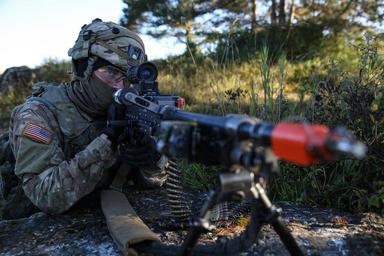 | Keywords: 7th army training command 7tharmytrainingcommand allied spirit v alliedspiritv jmrc nato u.s. army europe usarmyeurope hohenfels bayern germany de outdoor U.S. Army Pfc. Christopher Koplin of Regimental Engineer Squadron, 2nd Cavalry Regiment provides security while conducting a tactical operation during Exercise Allied Spirit V at 7th Army Training Command's Hohenfels Training Area, Germany, Oct. 5, 2016. Exercise Allied Spirit includes about 2,520 participants from eight NATO nations, and exercises tactical interoperability and tests secure communications within Alliance members and partner nations. (U.S. Army photo by Pfc. Rachel Wilridge) www.dvidshub.net U.S. Army Pfc. Christopher Koplin of Regimental Engineer Squadron, 2nd Cavalry Regiment provides security while conducting a tactical operation during Exercise Allied Spirit V at 7th Army Training Command's Hohenfels Training Area, Germany, Oct. 5, 2016. Exercise Allied Spirit includes about 2,520 participants from eight NATO nations, and exercises tactical interoperability and tests secure communications within Alliance members and partner nations. (U.S. Army photo by Pfc. Rachel Wilridge) www.dvidshub.net |