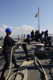 | Keywords: navy uss ross (ddg 71) ussrossddg71 ddg 71 ddg71 u.s. 6th fleet us6thfleet c6f ctf 65 ctf65 patrol larnaca cyprus larnacacyprus outdoor 161007-N-FP878-134LARNACA, Cyprus (Oct. 07, 2016) Sailors heave on a mooring line as USS Ross (DDG 71) pulls into Larnaca, Cyprus Oct. 07, 2016. Ross, an Arleigh Burke-class guided-missile destroyer, forward-deployed to Rota, Spain, is conducting naval operations in the U.S. 6th Fleet Area of Operations in support of U.S. national security interests in Europe and Africa. (U.S. Navy photo by Petty Officer 1st Class Theron J. Godbold/Released) 161007-N-FP878-134LARNACA, Cyprus (Oct. 07, 2016) Sailors heave on a mooring line as USS Ross (DDG 71) pulls into Larnaca, Cyprus Oct. 07, 2016. Ross, an Arleigh Burke-class guided-missile destroyer, forward-deployed to Rota, Spain, is conducting naval operations in the U.S. 6th Fleet Area of Operations in support of U.S. national security interests in Europe and Africa. (U.S. Navy photo by Petty Officer 1st Class Theron J. Godbold/Released) |