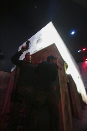 Keywords: Police Officers assigned to the Atlantic City Special Weapons and Tactics (SWAT) team clear an indoor urban area during low light tactical training at the New Jersey National Guard's Joint Training and Training Development Center (JT2DC), Joint Base McGuire-Dix-Lakehurst, N.J., Oct. 14, 2016. The JT2DC is used by the military, civil authorities, and foreign allies for training and features the Virtual Interactive Combat Environment (VICE), indoor Military Operations in Urban Terrain (MOUT) Immersion/Night Fighting Lanes, Call For Fire Trainer (CFFT) and Immersion Lane, Engagement Skills Trainer 2000 (EST 2000), and the Virtual Convoy Operations Trainer (VCOT). (U.S. Air National Guard photo by Tech. Sgt. Matt Hecht/Released) swat atlanticcity police newjersey training tactical jt2dc jointbasemcguiredixlakehurst newjerseynationalguard nationalguard nj usa publicdomain