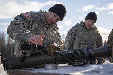 | Keywords: carl gustaf carlgustaf recoilless rifle recoillessrifle 3/509 3509 u.s. army alaska usarmyalaska joint base elmendorf-richardson jointbaseelmendorfrichardson alaska united states unitedstates us outdoor Sergeant 1st Class Robert Barrett, left, a native of Kalispell, Mont., assigned to Baker Company, 3rd Battalion, 509th Parachute Infantry Regiment, 4th Infantry Brigade Combat Team (Airborne) 25th Infantry Division, U.S. Army Alaska, adjusts a Carl Gustaf recoilless rifle system sight while preparing for live fire training at Joint Base Elmendorf-Richardson, Alaska, Nov. 1, 2016. The Carl Gustaf is a man-portable, breach-loading, 84mm recoilless rifle capable of destroying armored targets from up to 700 meters away. The paratroopers conducted the live fire training to hone their proficiency. (U.S. Air Force photo/Alejandro Peña) Sergeant 1st Class Robert Barrett, left, a native of Kalispell, Mont., assigned to Baker Company, 3rd Battalion, 509th Parachute Infantry Regiment, 4th Infantry Brigade Combat Team (Airborne) 25th Infantry Division, U.S. Army Alaska, adjusts a Carl Gustaf recoilless rifle system sight while preparing for live fire training at Joint Base Elmendorf-Richardson, Alaska, Nov. 1, 2016. The Carl Gustaf is a man-portable, breach-loading, 84mm recoilless rifle capable of destroying armored targets from up to 700 meters away. The paratroopers conducted the live fire training to hone their proficiency. (U.S. Air Force photo/Alejandro Peña) |
