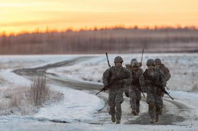| Keywords: airborne parachute field artillery parachutefieldartillery live fire livefire alaska northern command northerncommand norcom 105 mm howitzer 105mmhowitzer joint base elmendorf-richardson jointbaseelmendorfrichardson united states unitedstates us outdoor Paratroopers assigned to A Battery, 2nd Battalion, 377th Parachute Field Artillery Regiment, 4th Infantry Brigade Combat Team (Airborne), 25th Infantry Division, U.S. Army Alaska, leave Malemute drop zone after conducting airborne and 105 mm howitzer live fire training at Joint Base Elmendorf-Richardson, Alaska, Nov. 22, 2016. Following a heavy equipment drop and parachute assault, the paratroopers honed their skills by setting up and firing a 105 mm howitzer. The Soldiers of 4/25 IBCT belong to the only American airborne brigade in the Pacific and are trained to execute airborne maneuvers in extreme cold weather/high altitude environments in support of combat, partnership and disaster relief operations. (U.S. Air Force photo/Alejandro Pena) www.dvidshub.net Paratroopers assigned to A Battery, 2nd Battalion, 377th Parachute Field Artillery Regiment, 4th Infantry Brigade Combat Team (Airborne), 25th Infantry Division, U.S. Army Alaska, leave Malemute drop zone after conducting airborne and 105 mm howitzer live fire training at Joint Base Elmendorf-Richardson, Alaska, Nov. 22, 2016. Following a heavy equipment drop and parachute assault, the paratroopers honed their skills by setting up and firing a 105 mm howitzer. The Soldiers of 4/25 IBCT belong to the only American airborne brigade in the Pacific and are trained to execute airborne maneuvers in extreme cold weather/high altitude environments in support of combat, partnership and disaster relief operations. (U.S. Air Force photo/Alejandro Pena) www.dvidshub.net |