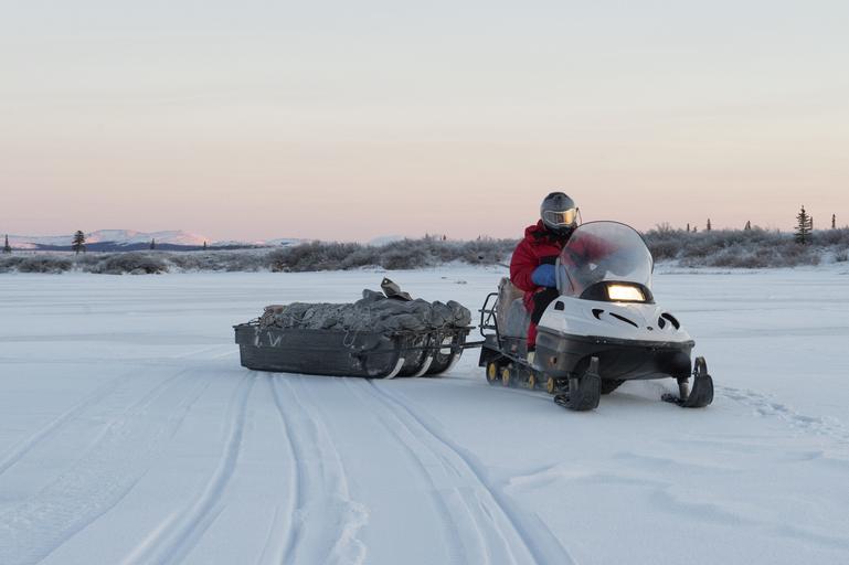 MAKE A MEME View Large Image Michael Sickels, the inspector-instructor for Detachment Delta, 4th Law Enforcement Battalion, pulls a sled via snow machine while traveling across the Northwest Arctic Borough in Alaska, Dec. 4, 2016. Sickels was part of a team of Marines ...