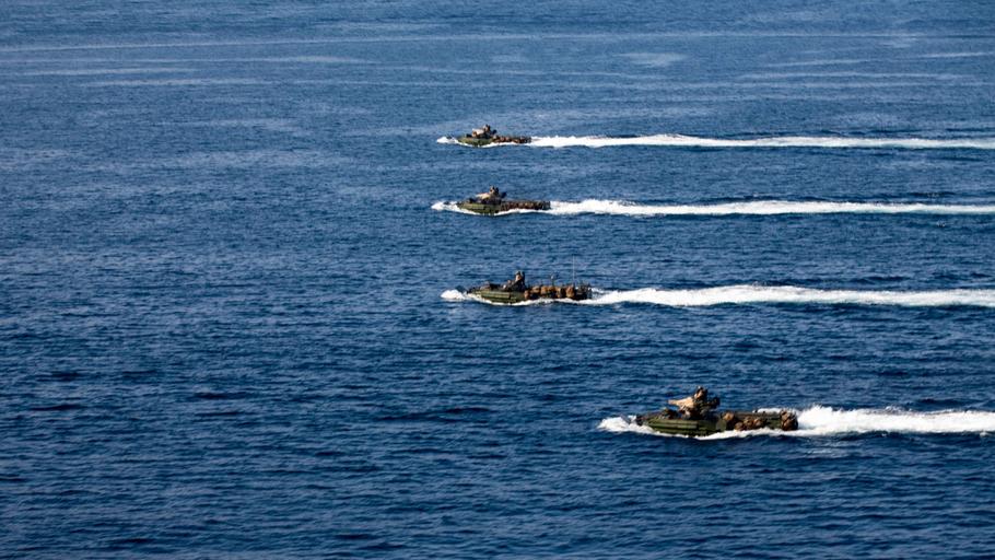 Keywords: usnavcent alligator dagger alligatordagger ctf 51/5 ctf515 makin island arg makinislandarg amphibious ready group amphibiousreadygroup 11th meu 11thmeu 11th marine expeditionary unit 11thmarineexpeditionaryunit u.s. marine corps usmarinecorps u.s. navy usnavy naval amphibious forces navalamphibiousforces battalion landing team 1st battalion 4th marines battalionlandingteam1stbattalion4thmarines blt 1/4 blt14 ground combat element groundcombatelement combat logistics battalion 11 combatlogisticsbattalion11 clb-11 clb11 logistics combat element logisticscombatelement marine medium tiltrotor squadron 163 (reinforced) marinemediumtiltrotorsquadron163reinforced vmm-163 vmm163 aviation combat element aviationcombatelement maritime raid force maritimeraidforce mrf uss somerset usssomerset lpd-25 lpd25 amphibious transport dock ship amphibioustransportdockship uss comstock usscomstock lsd-45 lsd45 dock landing ship docklandingship uss makin island ussmakinisland lhd-8 lhd8 amphibious assault ship amphibiousassaultship lcac landing craft air cushion landingcraftaircushion magtf marine air-ground task force. marineairgroundtaskforce u.s. 5th fleet area of responsibility us5thfleetareaofresponsibility usa outdoor vehicle boat waterfront water sea U.S. 5TH FLEET AREA OF OPERATIONS (Dec. 6, 2016) Amphibious assault vehicles with the 11th Marine Expeditionary Unit move in formation through the Gulf of Aden during an amphibious assault rehearsal as part of Exercise Alligator Dagger, Dec. 6, 2016. The Makin Island Amphibious Ready Group (ARG) and 11th Marine Expeditionary Unit (MEU) will conduct amphibious operations and combat sustainment training. The ARG/MEU Navy-Marine Corps team is operating in the U.S. 5th Fleet area of responsibility in support of maritime security operations, crisis response, and theater security cooperation efforts to ensure the free flow of commerce, freedom of navigation and regional security. (U.S. Marine Corps photo by Cpl. Devan K. Gowans) U.S. 5TH FLEET AREA OF OPERATIONS (Dec. 6, 2016) Amphibious assault vehicles with the 11th Marine Expeditionary Unit move in formation through the Gulf of Aden during an amphibious assault rehearsal as part of Exercise Alligator Dagger, Dec. 6, 2016. The Makin Island Amphibious Ready Group (ARG) and 11th Marine Expeditionary Unit (MEU) will conduct amphibious operations and combat sustainment training. The ARG/MEU Navy-Marine Corps team is operating in the U.S. 5th Fleet area of responsibility in support of maritime security operations, crisis response, and theater security cooperation efforts to ensure the free flow of commerce, freedom of navigation and regional security. (U.S. Marine Corps photo by Cpl. Devan K. Gowans) |