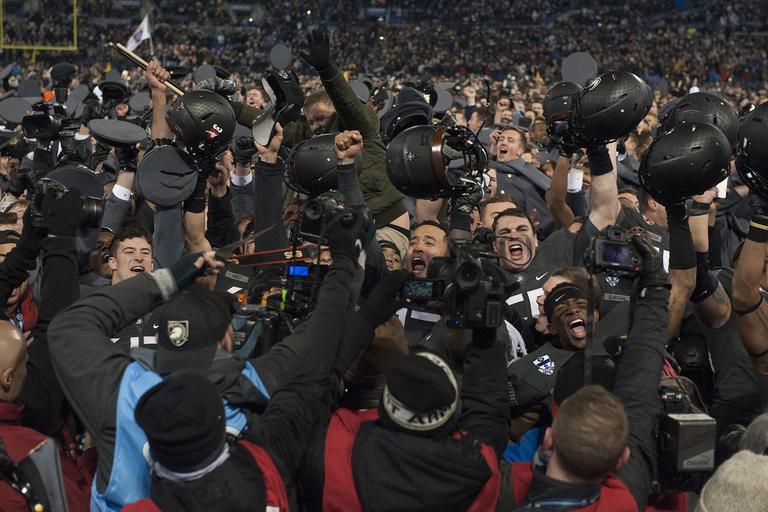 | Keywords: army navy armynavy army football armyfootball athletics football sports people crowd Army West Point Football players celebrate after winning the 117th Army Navy Game presented by USAA at M&T Bank Stadium in Baltimore December 10, 2016. Army defeated the U.S. Naval Academy 21-17 snapping Navy’s 14-year win streak. (U.S. Army photo by: John Pellino) Army West Point Football players celebrate after winning the 117th Army Navy Game presented by USAA at M&T Bank Stadium in Baltimore December 10, 2016. Army defeated the U.S. Naval Academy 21-17 snapping Navy’s 14-year win streak. (U.S. Army photo by: John Pellino) |