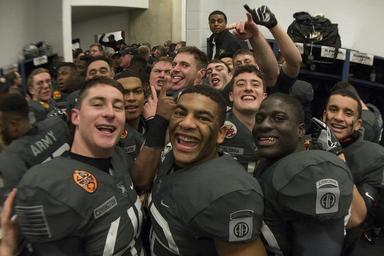 | Keywords: army navy armynavy army football armyfootball athletics football sports groupshot people sport team sport Army West Point Football players celebrate after winning the 117th Army Navy Game presented by USAA at M&T Bank Stadium in Baltimore December 10, 2016. Army defeated the U.S. Naval Academy 21-17 snapping Navy’s 14-year win streak. (U.S. Army photo by: John Pellino) Army West Point Football players celebrate after winning the 117th Army Navy Game presented by USAA at M&T Bank Stadium in Baltimore December 10, 2016. Army defeated the U.S. Naval Academy 21-17 snapping Navy’s 14-year win streak. (U.S. Army photo by: John Pellino) |