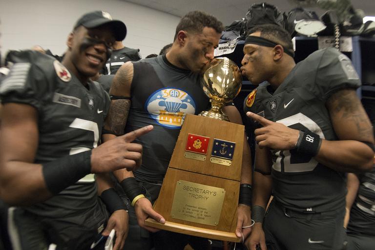 | Keywords: army navy armynavy army football armyfootball athletics football sports Army West Point Football kiss the Secretary’s Trophy after winning the 117th Army Navy Game at M&T Bank Stadium in Baltimore December 10, 2016. Army defeated the U.S. Naval Academy 21-17 snapping Navy’s 14-year win streak. (U.S. Army photo by: John Pellino) Army West Point Football kiss the Secretary’s Trophy after winning the 117th Army Navy Game at M&T Bank Stadium in Baltimore December 10, 2016. Army defeated the U.S. Naval Academy 21-17 snapping Navy’s 14-year win streak. (U.S. Army photo by: John Pellino) |