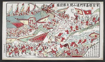 | Keywords: 16126.d.4(38)-Victory at Lianshanguan by the soldiers of Generals Song Qing and Nie Shicheng.jpg accession number Creator 無し Size cm 63 9 36 8 exhibition history Institution British Library object history object type Information field Title Original Chinese 宋宮 聶軍 山関大 捷 ; Information field Title Pinyin Song gong bao Nie jun men Lianshanguan da sheng jie tu ; Information field Title Japanese Translation 宋(慶)太子と聶(士成)提 が 山関で大 利するの図 ; Information field Publisher 呉文 齋 Wuwenyizhai ; Information field British Library Shelfmark 16126 d 4 38 PD-old-auto place of creation China place of discovery cite web The Sino-Japanese War of 1894-1895 as seen in prints and archives http //www jacar go jp/english/jacarbl-fsjwar-e/gallery/gallery008 html Japan Centre for Asian Historical Records and the British Library British Library image 16126 d 4 38 BLL01016132528 yes Victory at Lianshanguan by the soldiers of Generals Song Qing and Nie Shicheng Uploaded with GWToolset 16126 d 4 38 -Victory at Lianshanguan by the soldiers of Generals Song Qing and Nie Shicheng http //www jacar go jp/jacarbl-fsjwar-j/gallery/images/zoom/16126 d 4/16126 d 4_ 38 _B20102-61 jpg British Library Asian and African Collections Prints of the First Sino-Japanese War in the British Library |