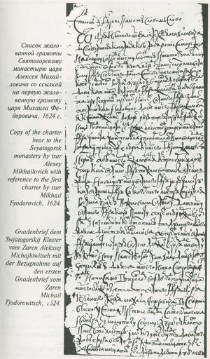 | View Original: | 1624. Список жалованой грамоты Святогорскому монастырю.jpg (1268x2164) | |||