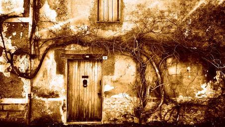 Keywords: dsc00534-1504 dsc005341504 facade house old monochrome sepia le vaudoué levaudoué france serene texture outdoor