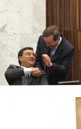 Keywords: Deputado Augustinho Zucchi (PDT) cumprimenta o secretário de Estado da Saúde, Michele Caputo Neto. Foto: Nani Gois/Alep (crédito obrigatório) poderlegislativo augustinhozucchi