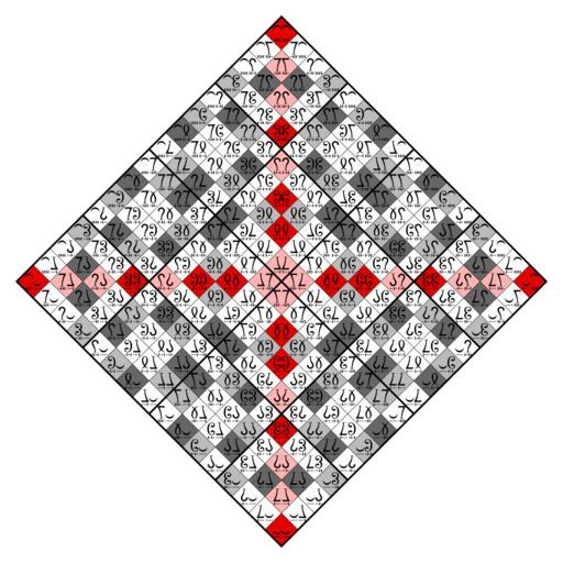 Keywords: 16x16 matrix like octeract Hasse diagram.svg The 256 3-ary Boolean functions ordered in a matrix organized like a Hasse diagram The colors of the matrix fields indicate the five greatest big equivalence classes <table> <tr> <td>thumb 350px Orgin is on the bottom<br>Lower bits change along left axis higher along right</td> <td>thumb 350px Orgin is top left<br>Lower bits change along vertical axis higher along horizontal</td> </tr> </table> own mate2code 3-ary Boolean functions Nibble shorthands 16x16 matrices representing octeracts Thue-Morse sequence white fields |