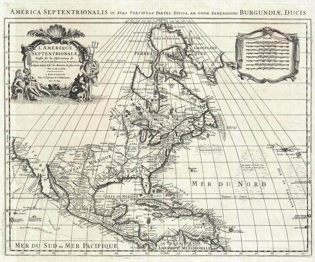 | Keywords: 1708 De L'Isle Map of North America (Covens and Mortier ed.) - Geographicus - AmeriqueSeptentrionale-covensmortier-1708.jpg An extraordinary map this is Covens and Mortier ™s 1708 reissue of De L ™Isle ™s landmark 1700 mapping of North America Covers the continent of North America from the Baffin Bay southwards as far as the Spanish Main westwards to Cape Mendocino and eastwards to include the Azores and the Sargasso Sea Cartographically this map is practically identical to De L ™Isle ™s map though the title cartouche has been moved to the upper left quadrant and the mile scales to the upper right with a new curtain motif frame Tooley in his Mapping of America considers this to be a foundational map and indeed it is one of the most influential maps to emerge from the De L ™Isle workshop Some consider this map to be one of the first to revert California to a peninsular state following the insular suppositions of the late 17th and early 18th centuries However this may be a misreading of the map De L ™Isle leaves the northern terminus of the Gulf of California open such that though the form of California is suggestive of a peninsular state should exploration prove the opposite the cartographer was covered On the west coast of California a false bay is notated though this may simply be a double mapping of the entrance to the Gulf of California Further north along the coast San Diego Seyo Cape Mendocin and Francis Drakes Port and the English claim of New Albion are noted Both Mexico and New Mexico are mapped with considerable sophistication with mines indigenous peoples mountains and river ways and the missions of Santa Fe Taos and San Antonio de Senecu El Paso noted The Mississippi valley is well developed and based upon the most advanced French information available at the time The forts of St Louis Bon Secours are noted as is the settlement of d ™Iberville at Bilochy Following the Mississippi north we find the Great Lakes beautifully drawn on the Coronelli model The French stronghold on the region is evident with forts at Tadousac Quebec Sorel Montreal and Frontenac identified In an act of clear carto-advocacy De L ™Isle confines the English colonies to the narrow strip of coastal lands east of the Alleghenies The River and Fort of Kinibeki Kennebec is set as the northern border of English holdings in the region Boston Nantucket Long Island Manhattan New Jersey Pennsylvania Jamestown Roanoke Charlestown and St Augustine among others are identified along the eastern seaboard At sea there are a couple of elements of note This is the first printed mapping of the Sargasso Sea here identified as the Mer de Sargasse where Icy flottent des herbes mais en montre quantite Along the Mexican and California coastline the routes of various navigators including Olivier Cortez Gaetan Mendonza and Francis Drake are delineated Just to the east of Barbados in the Antilles a curious apocryphal island appears with the label I de Fonseca selon Quelquefuns This island which is here surrounded by dangerous rocks and reefs appears in several maps of the region as early as Hondius ™ Americae Novissima Descriptio where it is identified as Y de S B This island was also identified by M Rochette with the label Galissioniere ™s Rock Other ships including the Rainbow claim to have seen the island as late as 1822 De L ™Isle was the first to give the map a definite name Fonseca Even so with so few sightings of the island it disappeared from most maps issued in the 18th century There is some speculation that discolored water occasionally discharged by the nearby Orinoco River led to various false sightings of land The condition of this map is of special note as it is nothing short of spectacular The impression is so intense it is reminiscent of Coronelli ™s work and the overall state of preservation is remarkable 1708 undated Size in 23 5 19 object history credit line accession number AmeriqueSeptentrionale-covensmortier-1708 Mortier P <i>Atlas Nouveau de diverse cartes choisies des Meilleurs Geographes comme Sanson G De L'Isle c </i> Amsterdam Chez Pierre P Mortier 1708 Geographicus-source PD-Art-100 1708 maps America Old maps of North America 1708 Old maps of the Caribbean 1708 Old maps of New France 1708 Sargasso Sea 1708 Guillaume Delisle America Pierre Mortier America Maps in French America Covens en Mortier |