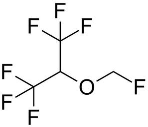 | Keywords: 1,1,1,3,3,3-hexafluoro-2-(fluoromethoxy)propane 200.svg validSVG Structure of 1 1 1 3 3 3-hexafluoro-2- fluoromethoxy propane Struktur von 1 1 1 3 3 3-Hexafluor-2- fluormethoxy propan Own 2014-04-11 Emeldir <span class signature-talk >talk</span> Chemical structure verified https //upload wikimedia org/wikipedia/commons/2/25/1 2C1 2C1 2C3 2C3 2C3-hexafluoro-2- 28fluoromethoxy 29propane_200 svg 1S/C4H3F7O/c5-1-12-2 3 6 7 8 4 9 10 11/h2H 1H2 DFEYYRMXOJXZRJ-UHFFFAOYSA-N 28523-86-6 Synonyms <small>1 1 1 3 3 3-Hexafluoro-2- fluoromethoxy propane 1 1 1 3 3 3-hexafluoro-2- fluoromethoxy propane BAX-3084 BRN 2041023 Fluoromethyl 1 1 1 3 3 3-hexafluoroisopropyl ether Fluoromethyl 2 2 2-trifluoro-1- trifluoromethyl ethyl ether; 1 1 1 3 3 3-Hexafluoro-2- fluoromethoxy -propane Fluoromethyl-2 2 2-trifluoro-1- trifluoromethyl ethyl ether MR-654 MR6S4 Sevofluraani Sevoflurane Sevoflurane Generic Ultane Sevoflurano Sevofluranum Sevofrane Sévoflurane Ultane</small> PD-chem Sevoflurane |